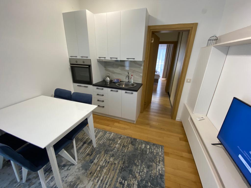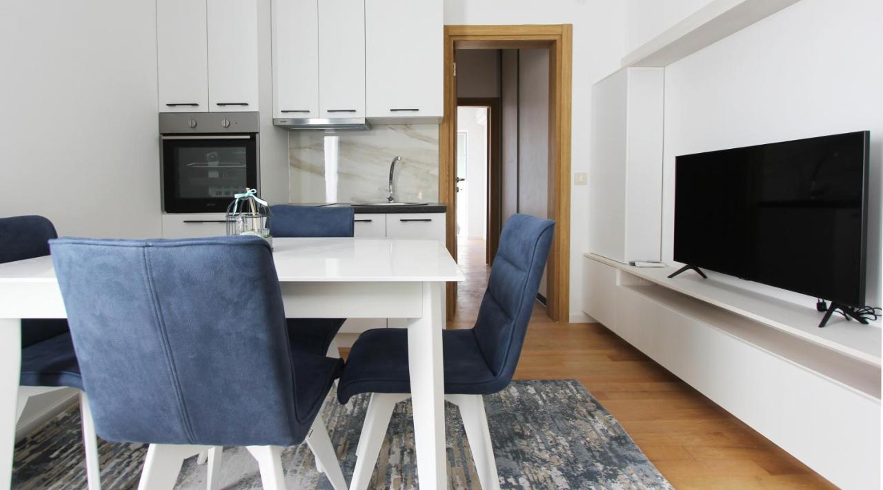 Nowoczesna łazienka wyposażona jest w przestronny prysznic typu walk-in oraz pralkę, a dodatkowe udogodnienia, takie jak suszarka do włosów, żelazko i deska do prasowania, zapewniają wygodę zarówno podczas krótkiego pobytu, jak i dłuższych wakacji. Do dyspozycji gości jest również duży, bezpłatny parking, a apartament położony jest w cichej okolicy na wzgórzu, skąd można w zaledwie 12 minut dojść do plaży i w około 40 minut spacerem dotrzeć do Starego Miasta Kotor, pełnego urokliwych uliczek, kawiarni i restauracji.