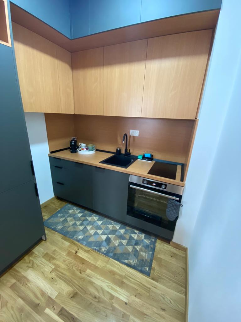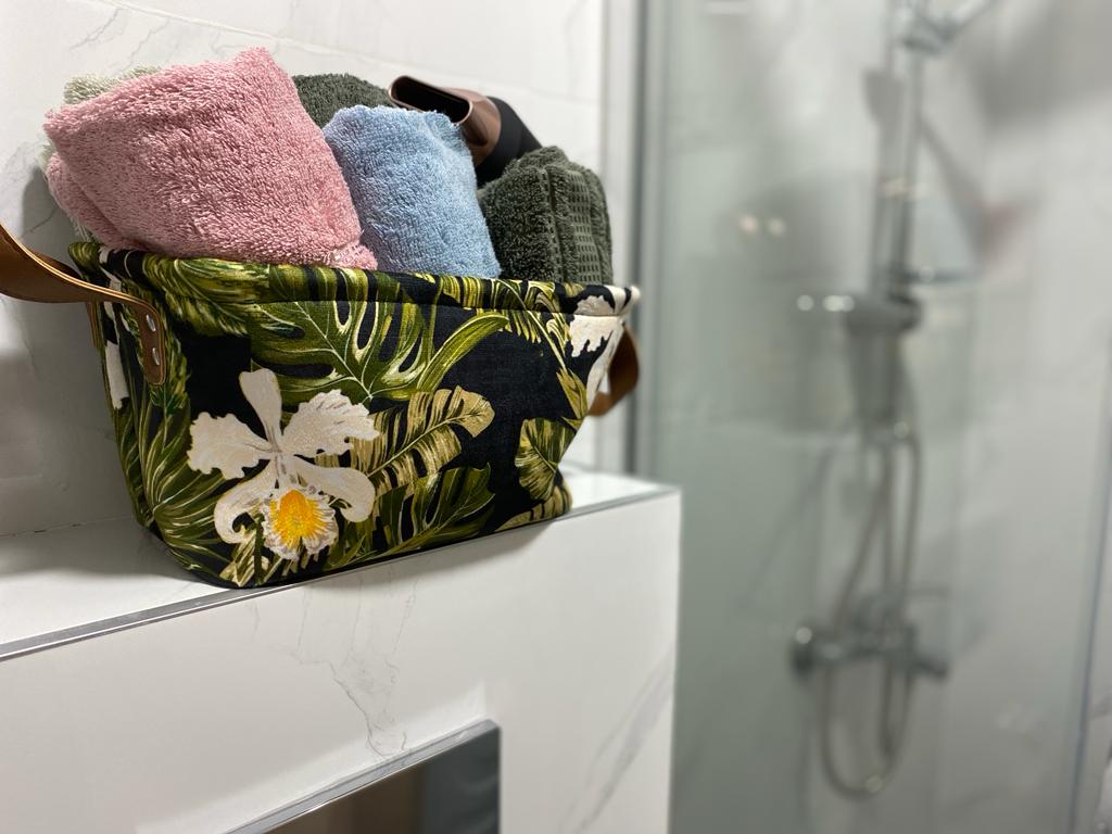 W pełni wyposażona kuchnia zawiera piekarnik, płytę indukcyjną, lodówkę z zamrażarką, zmywarkę do naczyń oraz ekspres do kawy, co ułatwia przygotowanie ulubionych posiłków podczas pobytu. Nowoczesna łazienka wyposażona jest w standardowy prysznic oraz pralkę, co pozwala na lekkie pakowanie i zachowanie świeżości podczas pobytu.