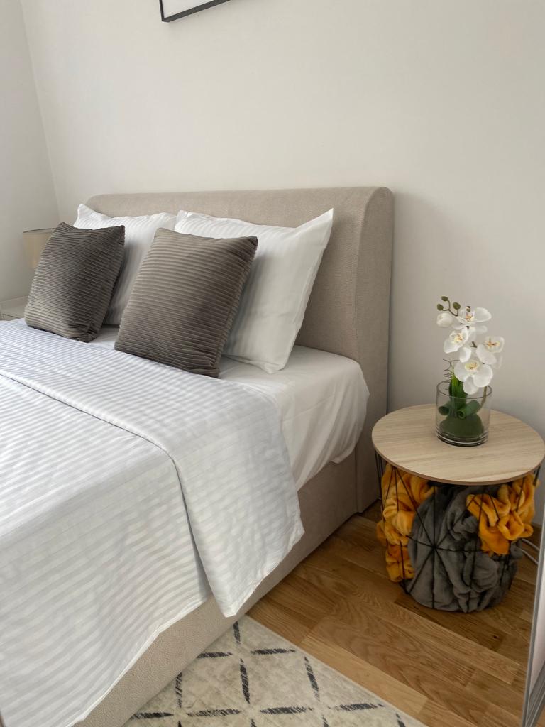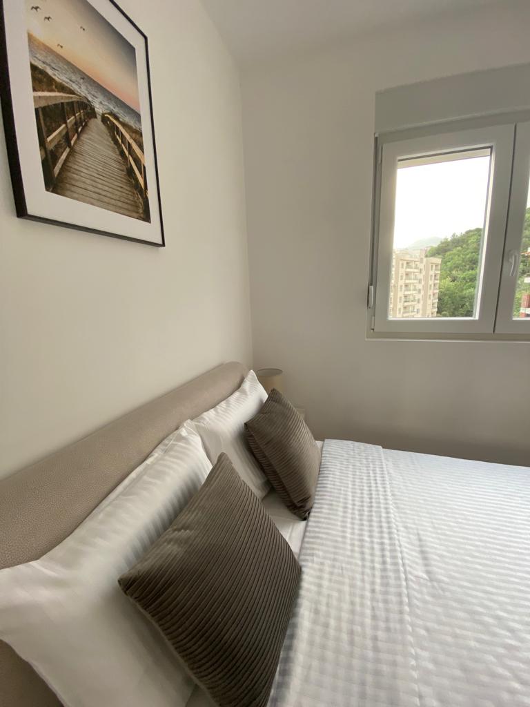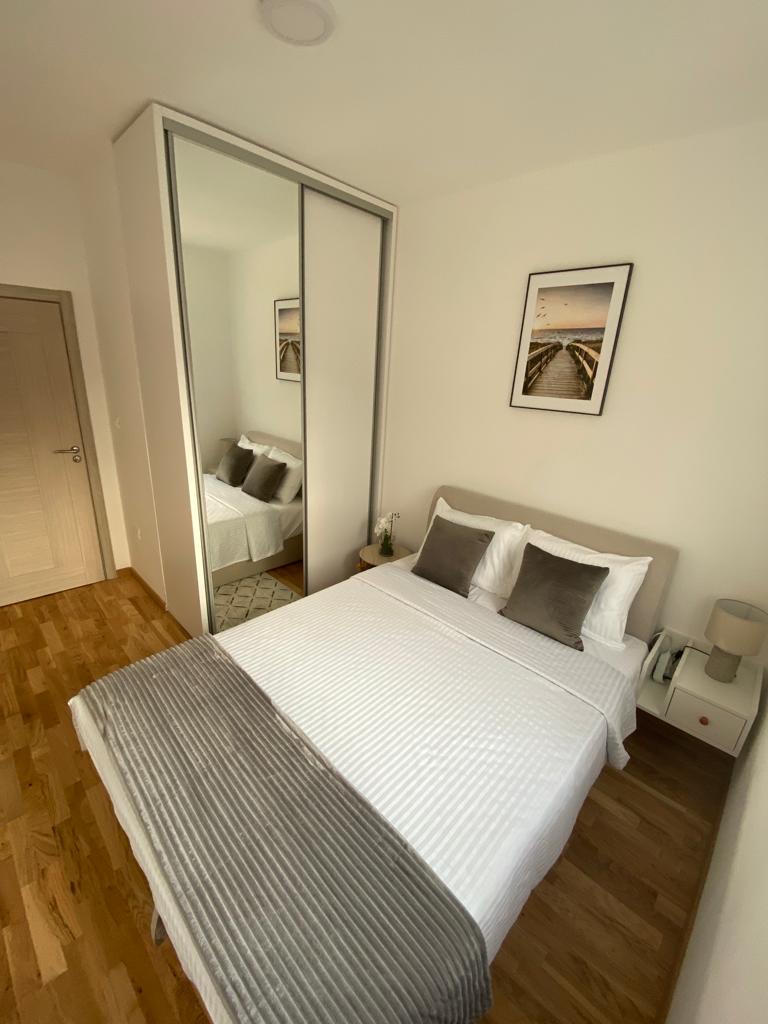 Witamy w luksusowym apartamencie z dwiema sypialniami w Bečići, który łączy komfort z nowoczesnymi udogodnieniami. Idealny zarówno na wypoczynek, jak i pracę, przestronna sypialnia główna wyposażona jest w wygodne łóżko podwójne, dużą szafę, biurko oraz bezpośredni dostęp do balkonu, co czyni ją doskonałym miejscem do pracy zdalnej. Druga sypialnia jest równie przytulna, a obie sypialnie mają przestronne szafy, zapewniając wystarczająco dużo miejsca na wszystkie rzeczy.